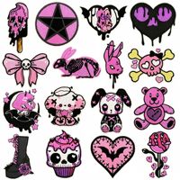 Hot Sales Doce Fresco Estilo Gótico Rosa Escuro Sentiu Botas Bordadas Crânio Bunny Patches Patch Emblemas para Acessórios de Vestuário